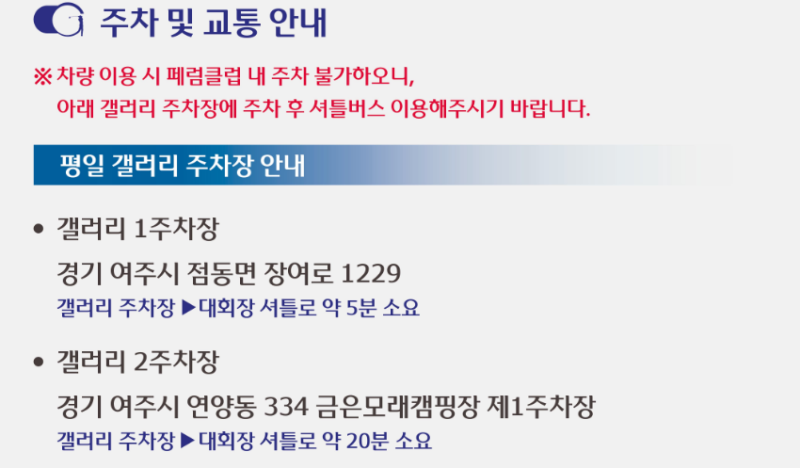 1-4주차장에 주차하고 운행하는 셔틀버스로 행사장으로 이동합니다.